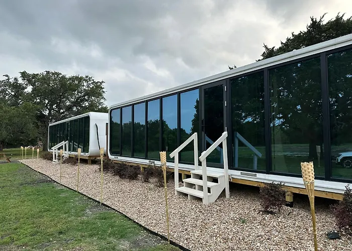 Le camere del Flatonia Glamping Retreat - Getaway Resort - 2Bedrooms, 2 Queen Beds sono dotate di un asse e un ferro da stiro e un impianto di climatizzazione, nonché di servizi per la preparazione di tè/caffè. I bagni includono una vasca da bagno, un bagno con WC separato e una doccia, e certe comodità, come asciugacapelli e asciugamani. Durante il soggiorno presso questo hotel a capsule puoi godere di una vista sul lago.